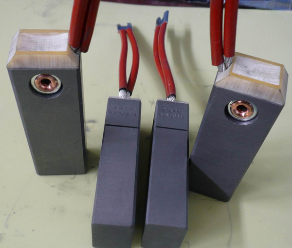 碳刷作為一種滑動打仗件,在良多電氣裝備中獲得普遍的利用。咱們能夠或許或許或許或許按照差別的產業利用范疇保舉和供給適合的碳刷商標。咱們產物材質首要有電化石墨,浸脂石墨,金屬(含銅,銀)石墨。 產物特色: 1.在換向器或集電環外表能較快構成一層平均、過度和不變的氧化薄膜。 2.碳刷的利用壽命長,不磨損換向器或集電環。 3.碳刷具備杰出的換向和集流機能,使火花按捺在許可的規模內,并且能量消耗小。 4.碳刷運轉時,不過熱,樂音小,拆卸靠得住不破壞。